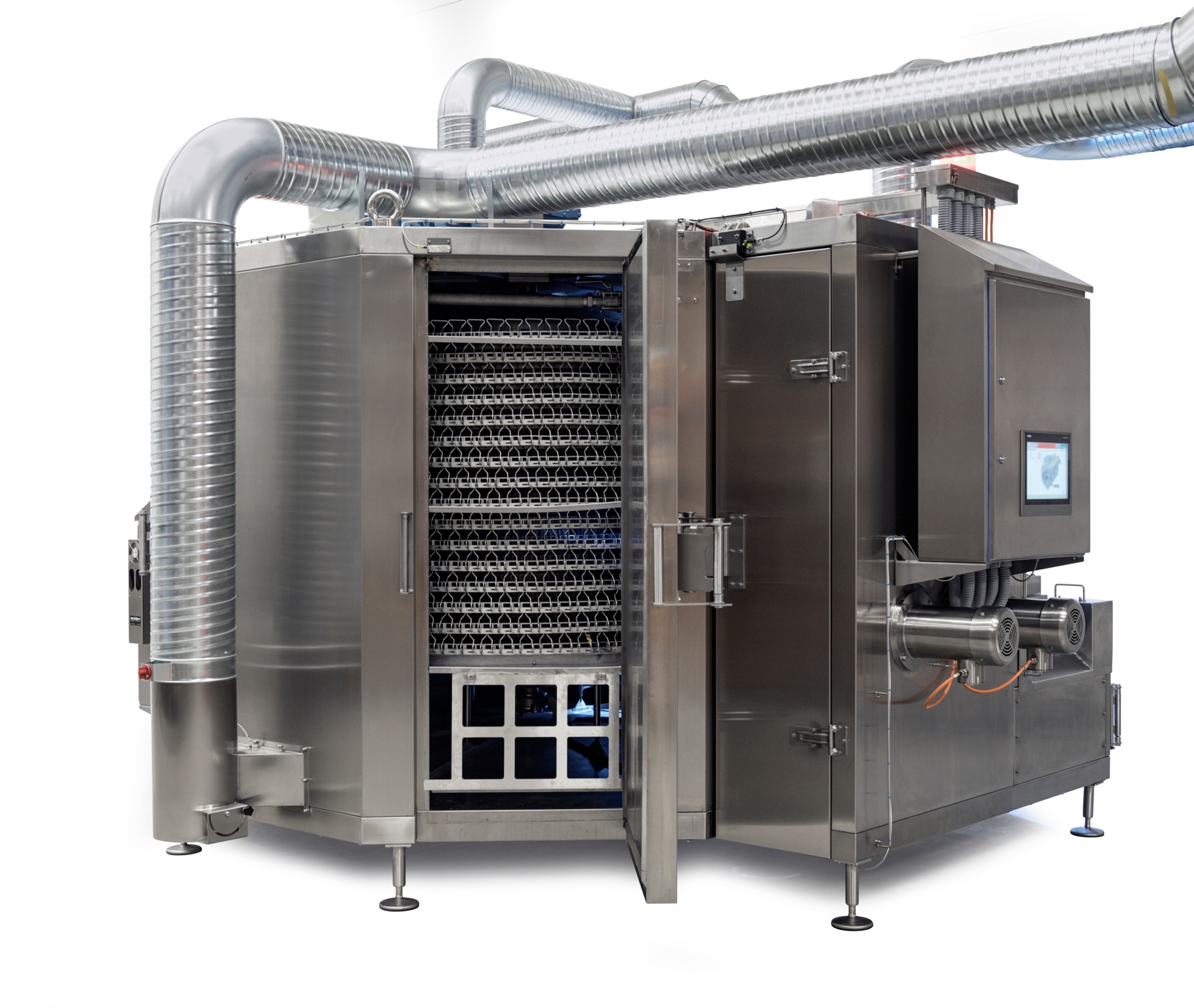 The CRYOLINE CS is a compact, self-stacking spiral freezer offering a high throughput based on liquid nitrogen (LIN). It uses vertical height instead of linear floor space to achieve a high production capacity on a small footprint.